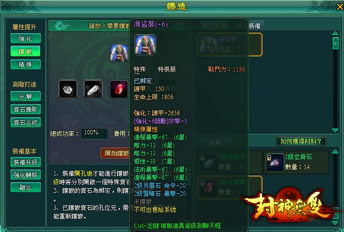 鑄造介面的第一個操作就是強化:放入相應的需要強化的裝備和對應的強化石(一級強化石強化 +1,5 級強化石強化 +5,以此類推)。