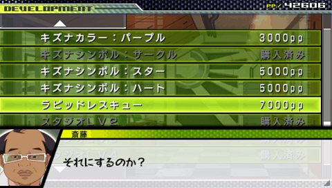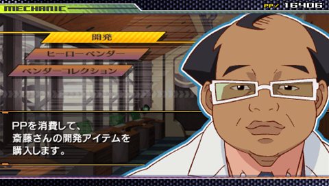 使用解決事件後得到的PP(私人點數),可以跟在機器整備房內的齋藤先生購入各式各樣的道具。同時也搭載可以玩英雄販賣機(轉蛋)的收藏機能。