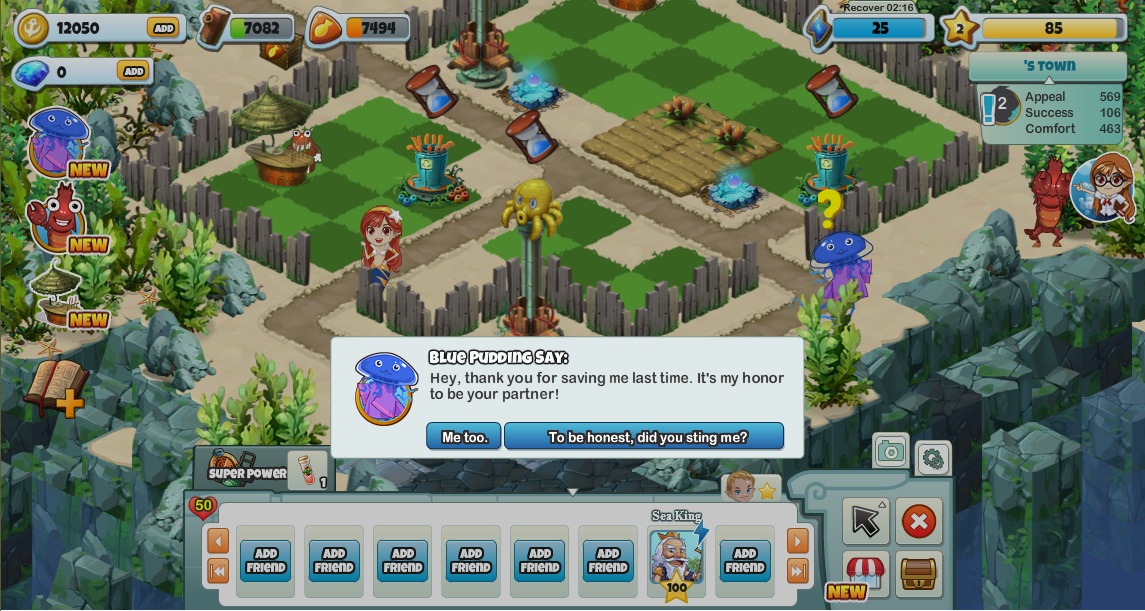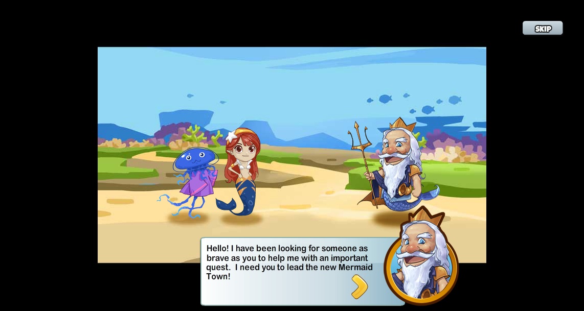 故事是這樣開始的…某天,主角走在路上,看到一隻可愛的藍色水母即將成為某條燈籠魚的午餐,於是我們的主角便見義勇為,與燈籠魚大戰三百回合後,終於將燈籠魚給趕跑。沒想到,水母沒有帶主角到龍宮大肆享受、也沒有到亞特蘭提斯參觀,反而是看見事發經過的海神王竟然還說「我需要像你這樣有勇氣的人來幫我振興人魚小鎮」,於是被強迫中獎的主角只好肩負起重建小鎮的工作。