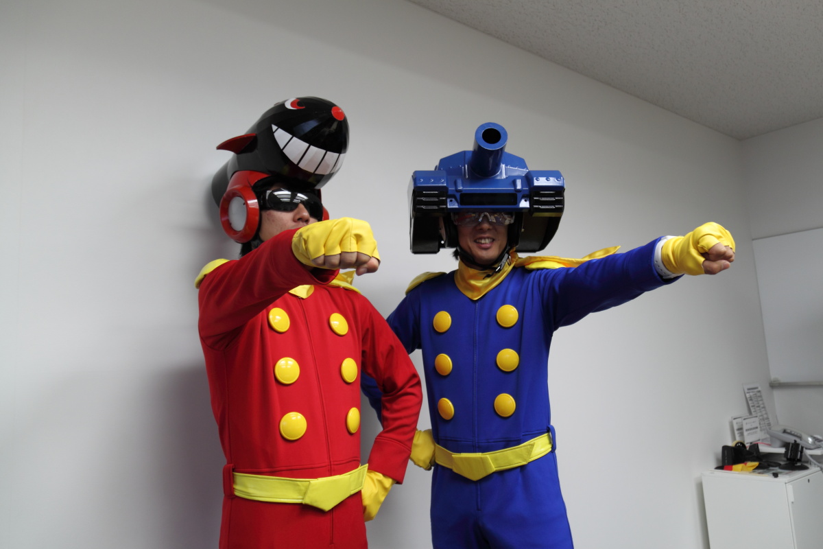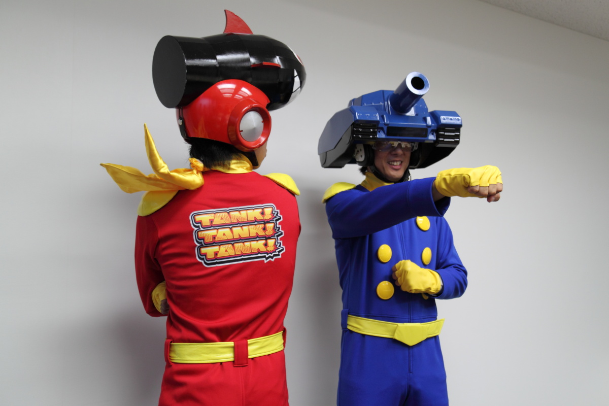 藍色戰車超人為小森製作人,紅色戰車超人為他的小助手