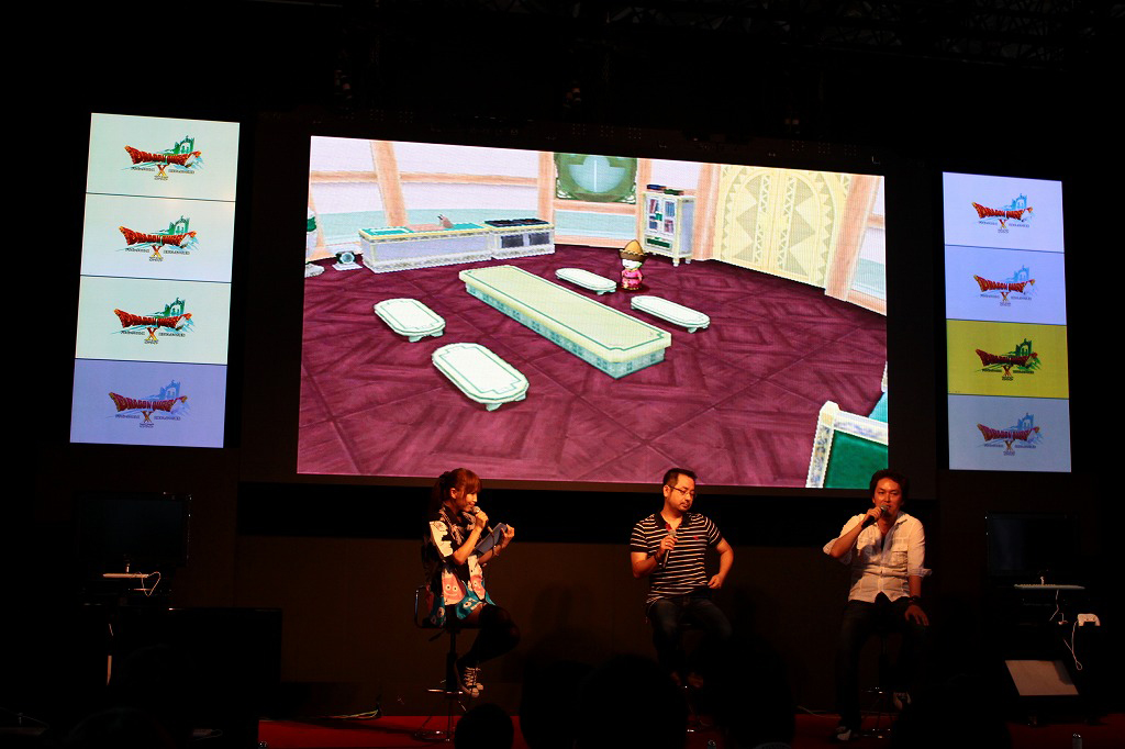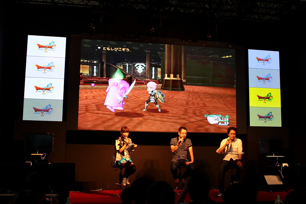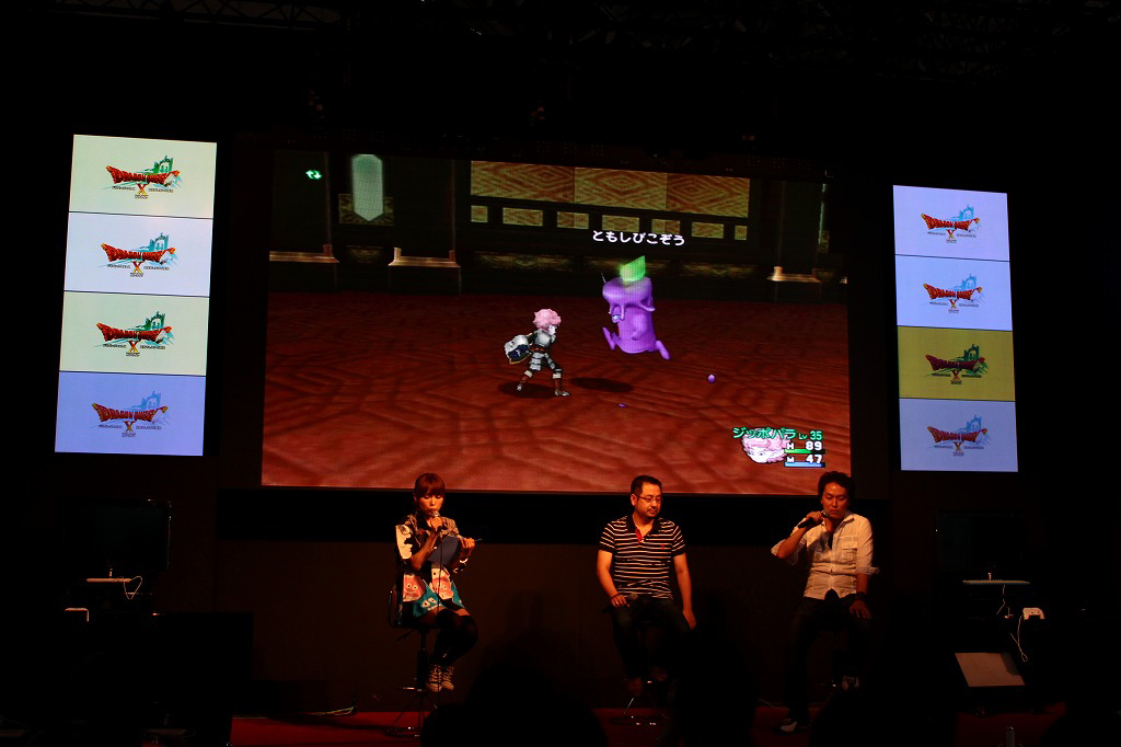 在這場名為「《勇者鬥惡龍 10》東京電玩展 2012・開發者特別談話」的活動中登場的是本作的製作人齋藤陽介先生與監督藤澤仁先生兩位。