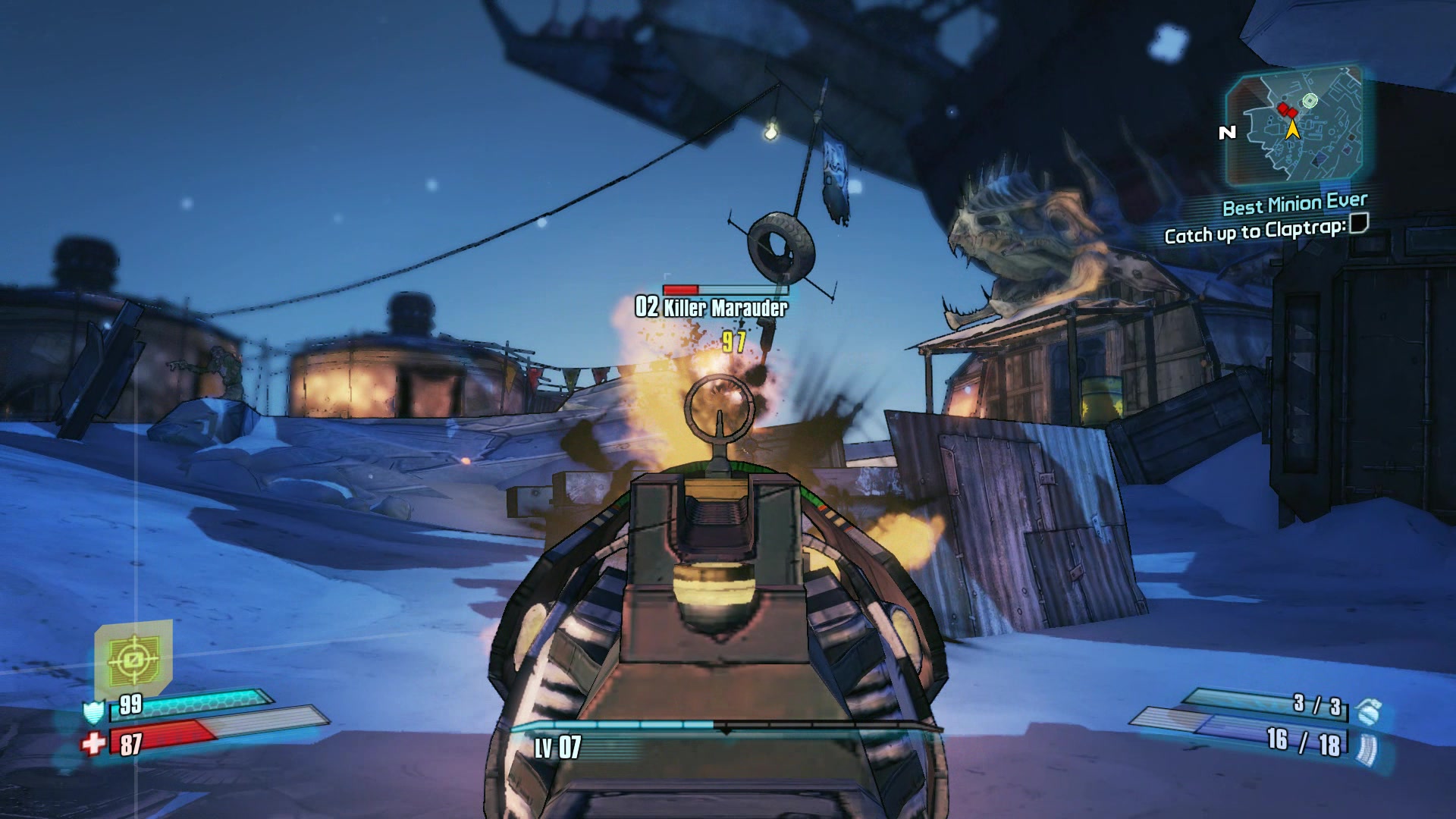 正式開始遊戲後馬上會看到一代的經典角色「Claptrap」,這台喋喋不休的機器人,在序章會一路陪著你,還會在你身邊說一堆有的沒的垃圾話。