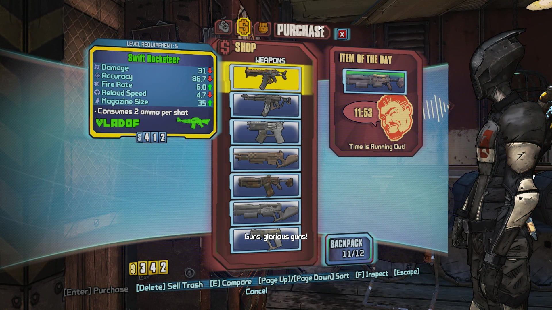 冒險途中會拿到各種稀奇古怪的槍枝,在遊戲初期就能拿到一把,換子彈時會把槍當手榴彈丟出去的怪異手槍。不過放心,丟出去後會馬上再手上冒出一把同樣的槍,而且子彈還會換好喔。