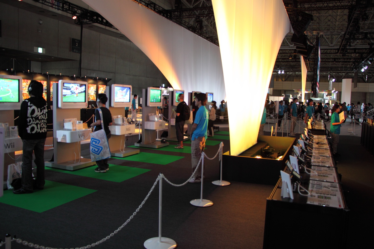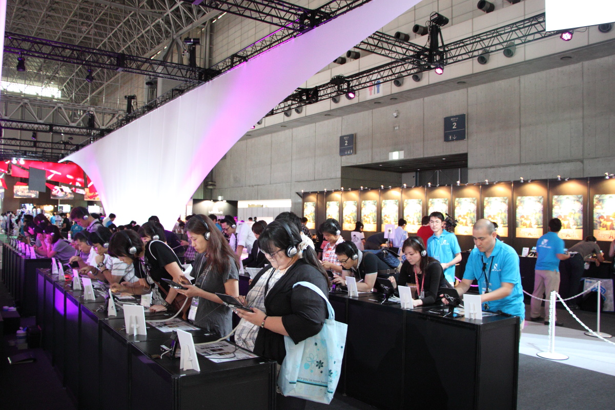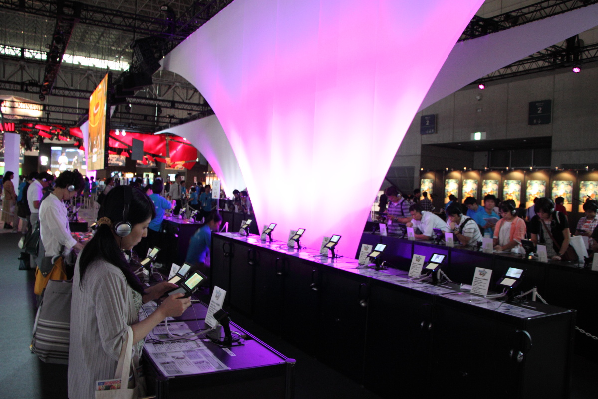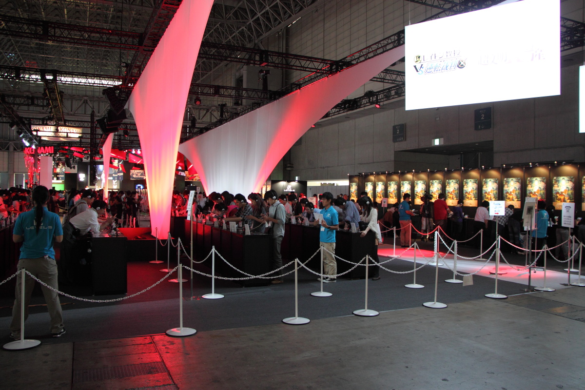 而在展場擺設方面,LEVEL-5 化繁為簡,整體配置除了中央的巨大投影幕不斷播放最新作品影片十分搶眼之外,內部基本上就是以寬闊的試玩機台為主體,再加上規畫完善的動線,欲令玩家藉由良好的試玩體驗,來滿足玩家對作品的興趣。
