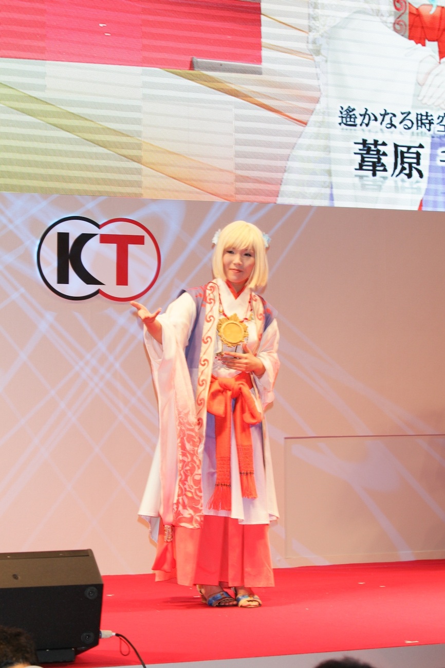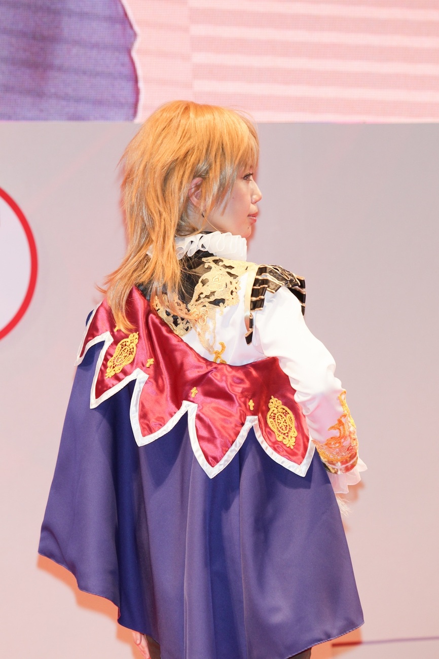 當唱出名字的瞬間,Cosplayer「オーパーツ」還因為太高興,連飛機頭假髮都掉下來了,連最後都讓會場沸騰了起來。而用紙來做服裝跟武器是這次得到製作人賞的「時計屋」教他的,他的得獎感言是「感謝支持我的夥伴們!」