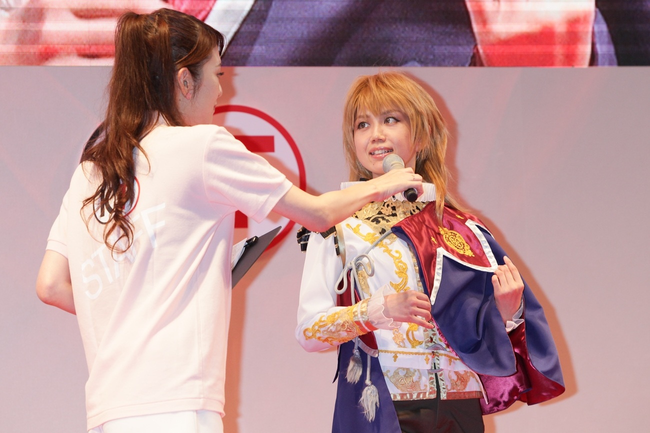 她表示這把槍是將窗簾桿加上在 100 元商店中找到的玩具製作而成的。山本小姐說,100 元商店是 Cosplayer 的強力夥伴。小野坂先生則感概地說「3 年來第一次看到自己演出的角色登場」。