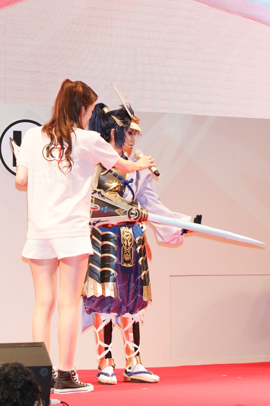 她表示為了這一天將劍重做了。也似乎用了很多手法來製作服裝,山本小姐提出了許多質問,例如「武器的素材是什麼?」「鎧是合成皮革嗎?」「從上到下有進行塗裝嗎?」等,之後也誇獎她「做的真好呢」