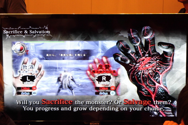 而打倒的頭目,其實也都是因為「欲望」而變貌成為怪物的人類,並會向玩家求饒,這個時候玩家也要選擇要「救贖」、「犧牲」他來強化自己的魔法,根據選擇強化的方向也會改變。