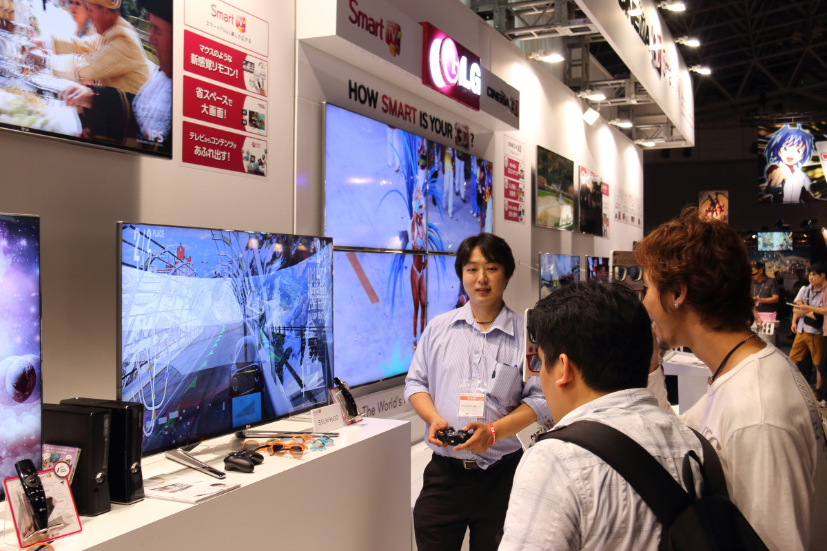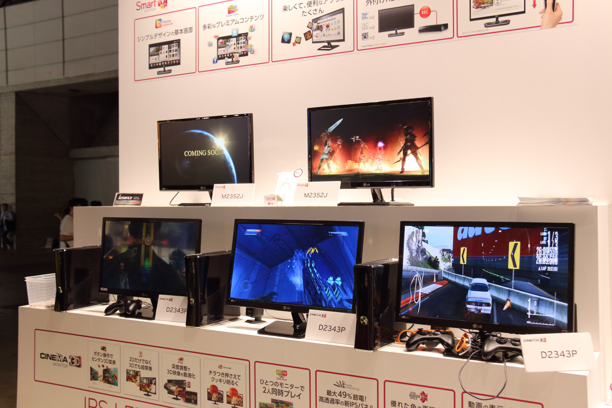 韓國家電大廠 LG 在這次東京電玩展中特別設攤展出支援 3D 立體顯示與雙畫面同時顯示的「CINEMA 3D Smart TV」液晶電視產品。
