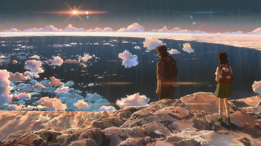而有「背景神」之稱的新海誠在本作畫面上更是發揮所長,他擅用光影製造畫面美感的技巧,將日本鄉村林間的復古懷舊風貌、斷崖絕壁的遼闊大地奇景,通通搬上大螢幕,並在鐵路的運行間,勾勒出濃濃的日本味,寫實與奇幻兩種迥異風情在片中同時並呈,藉由主人公踏上旅途一路以來的成長歷練,從中打造出波瀾壯麗的巨大冒險故事。
