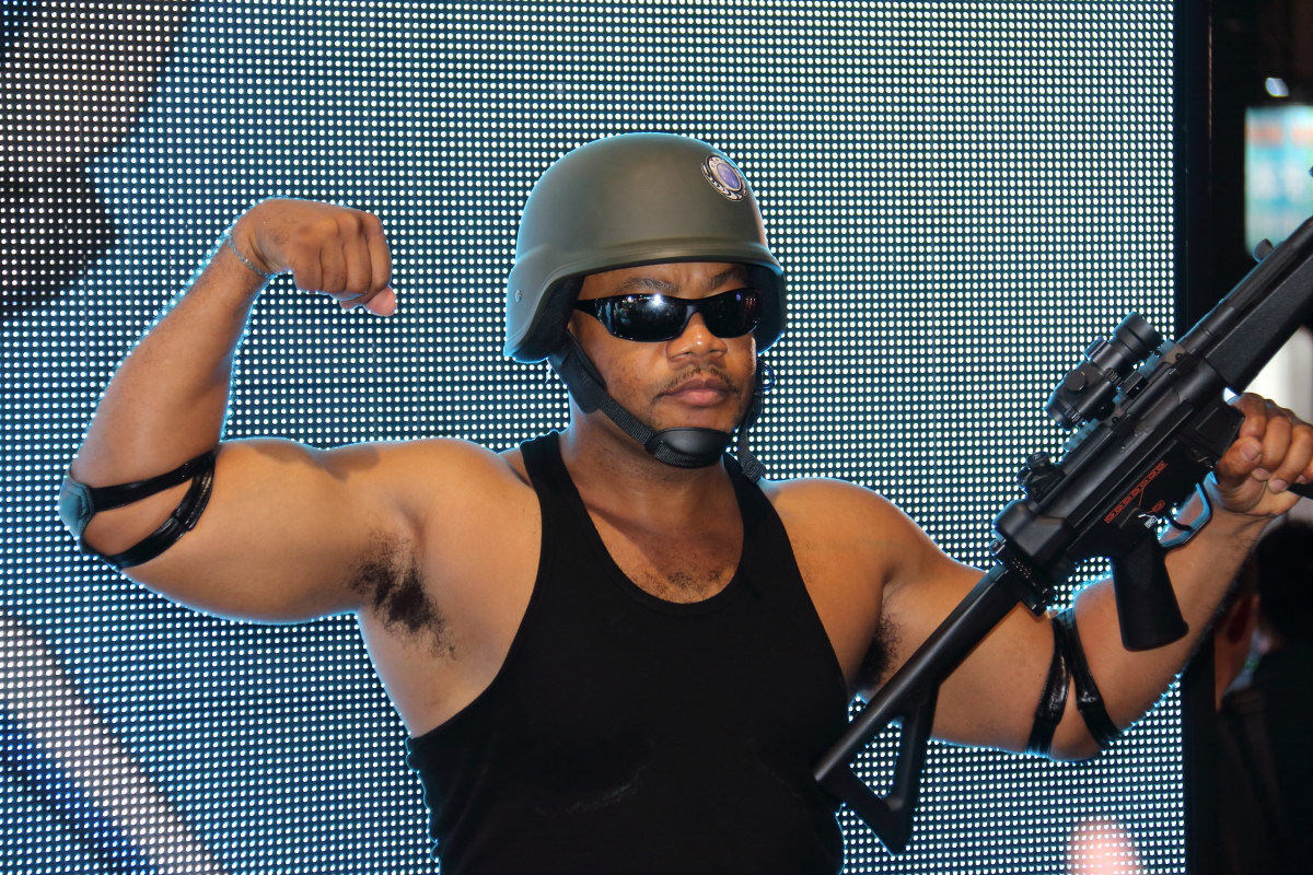 地球防衛軍》飛行女兵「蒼白之翼(Palewing)」紅藍黃綠 4 名成員的 Cosplay 展示女郎,以及魔鬼軍曹力奇、喬治隊員與湯姆隊員等人登台。