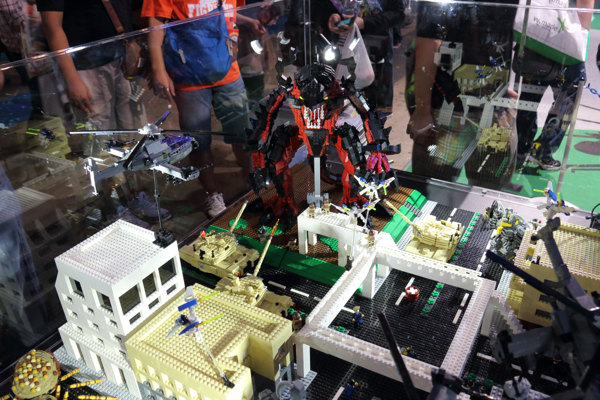 地球防衛軍》為主題,頂上設計乘太空船的模樣,還陳設了外星侵略機器人的塑像,以及使用樂高積木來重現地球防衛軍與外星巨大怪獸戰鬥的場面。中央的主舞台每天都會請出扮演成《