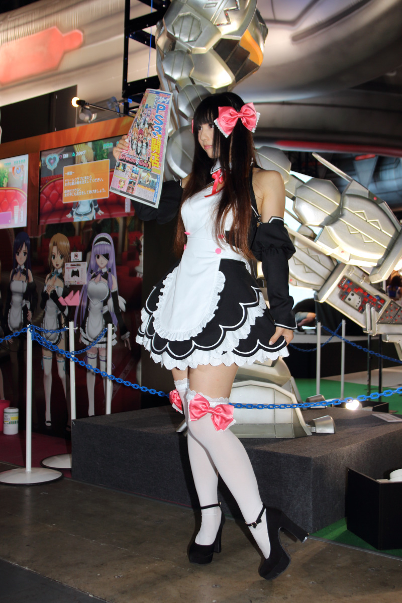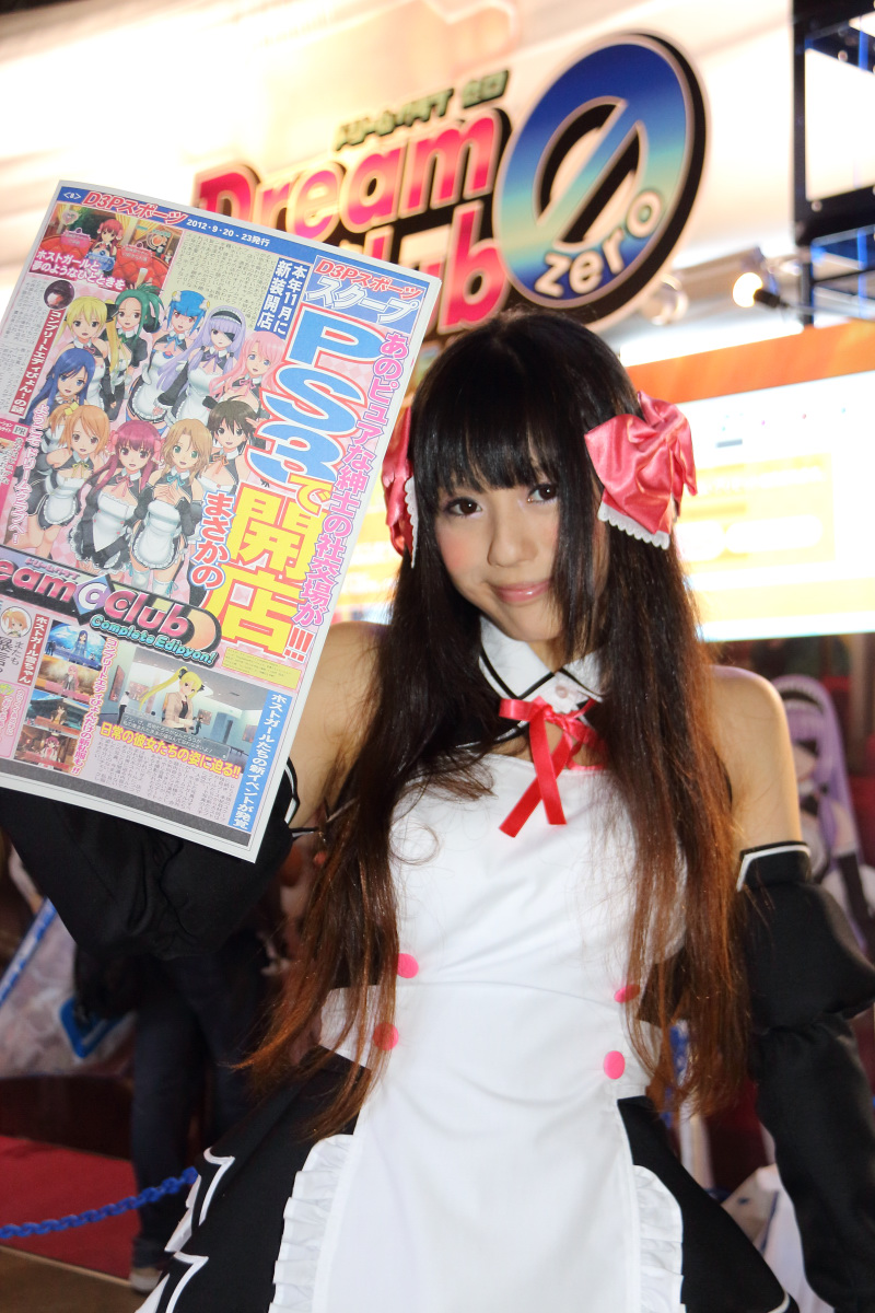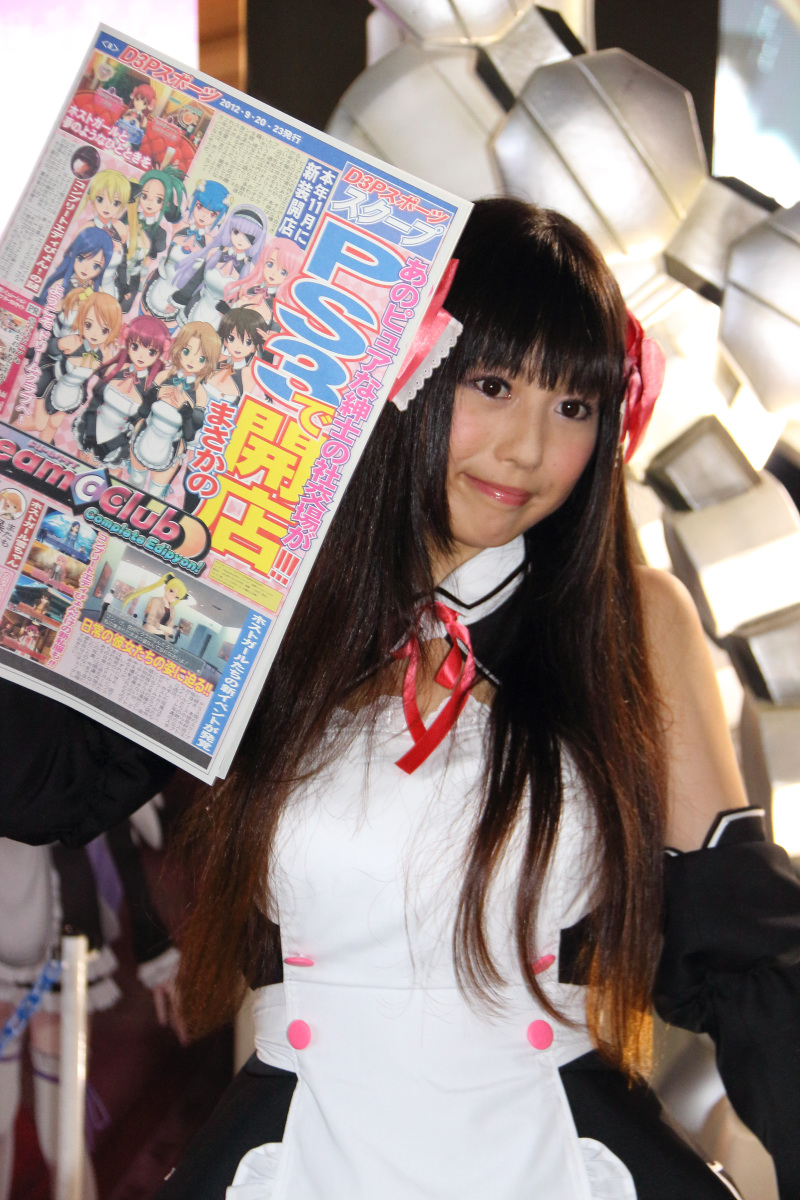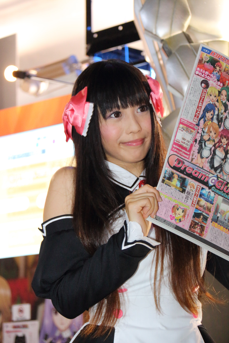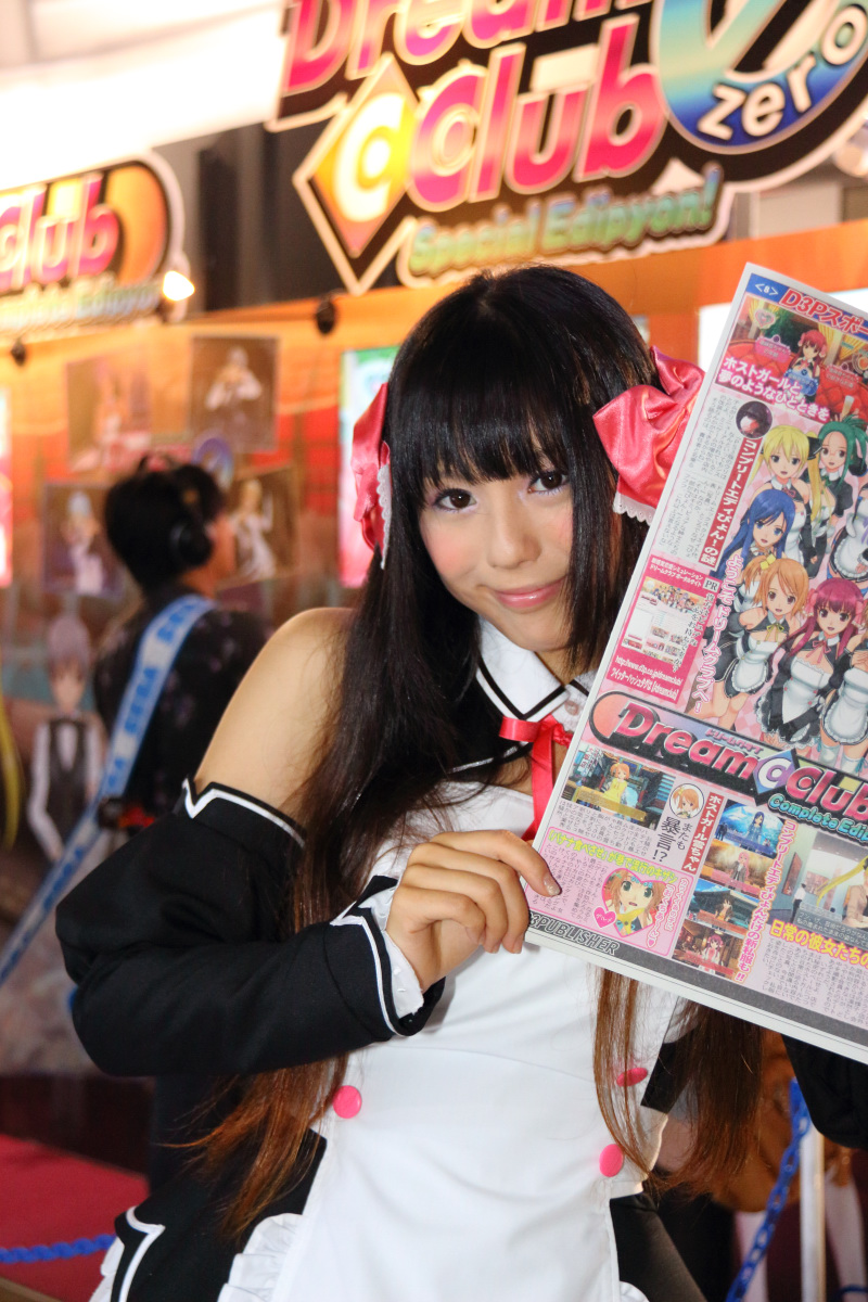 美夢俱樂部》甜美女侍的 Cosplay 展示女郎,則是在攤位四周發放 D3P 運動特刊。