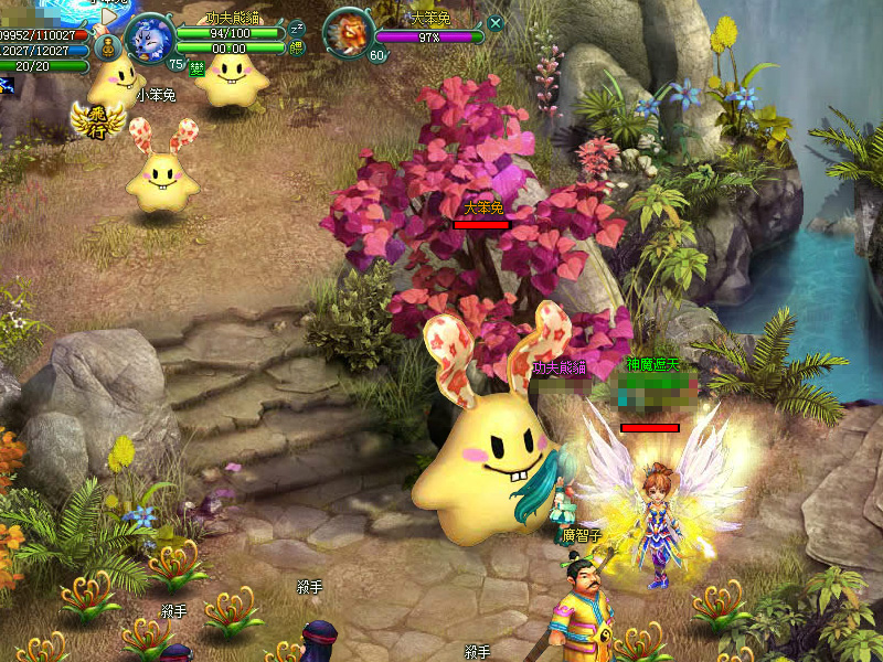 天色灰暗,月光黯淡,「笨笨兔」悄悄的從黑暗中探出頭,頑皮的它扭扭腰、踢踢腳,好久沒有出來透透氣了! 初秋微涼,野外 BOSS「笨笨兔」攜著小齙牙降落在靈虛崖、散花池、玉鼎洞天等地,隱藏武飾「月神之刃」被帶出來,卻不慎掉落,失去了蹤跡。