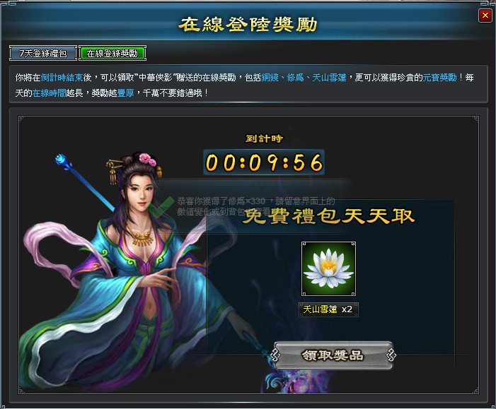 天天登陸天天送,天山雪蓮、修為、銅錢,更有機會獲得元寶