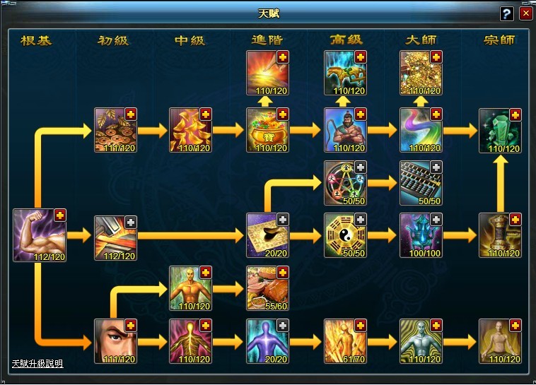 讓家將在修煉過程中更加專心,進而提升修煉效果的天賦。效果在遊戲中前期會比較明顯,而遊戲後期因為家將升級所需的經驗大幅增加,專心一致的提升效果便相對減少。不過想要在中前期領先其他玩家,在升級天賦時記得不要忽略這一項。
