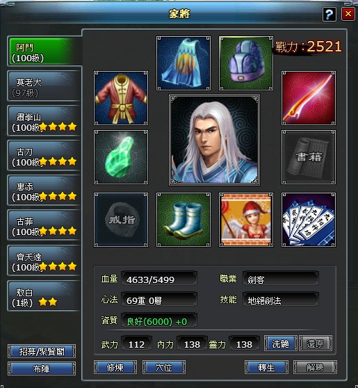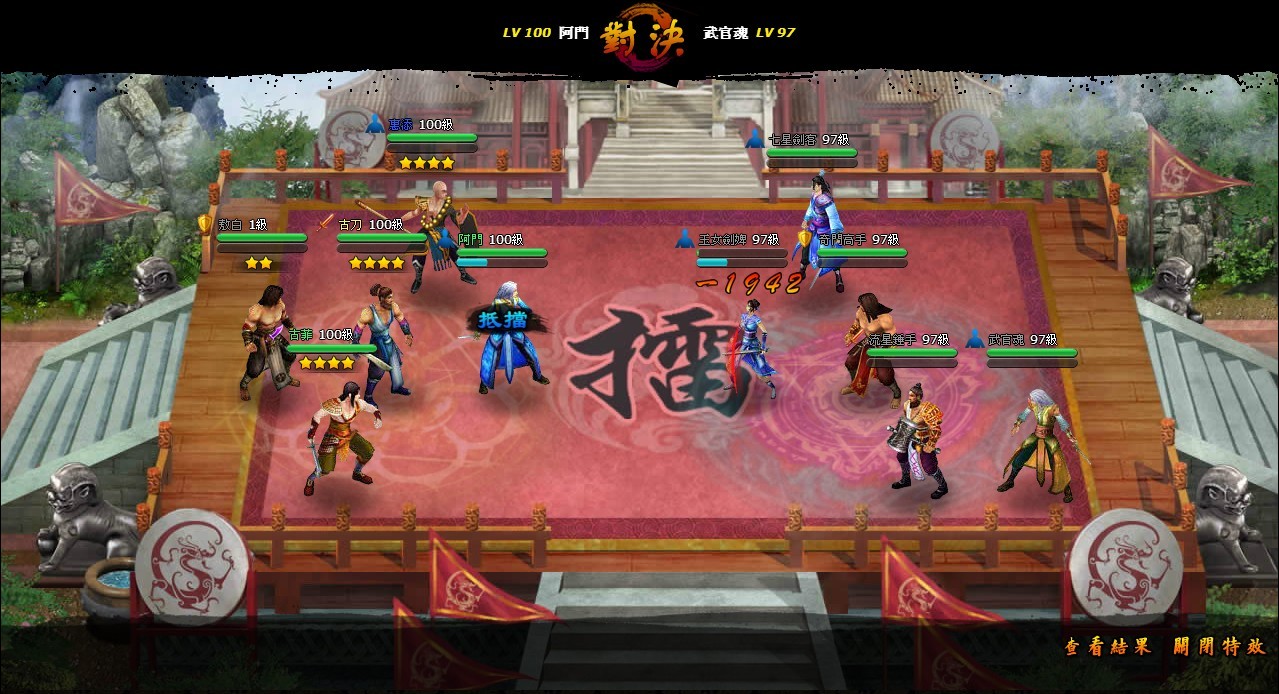 在遊戲中,有勇無謀的廝殺會浪費家將體力,更會被擊倒落敗。玩家在江湖歷險,挑戰各版圖的高手前,可以先查看敵人的佈陣與家將分佈,然後選擇出有利的佈陣,安排適合的家將上場,這樣才可剋敵制勝。
