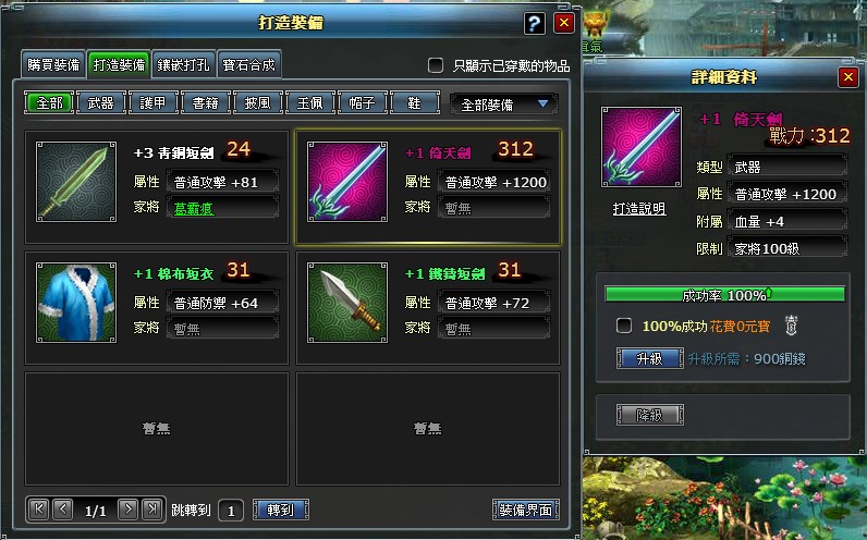 任憑家將武功再高,赤手空拳與敵交鋒始終不利。遊戲中玩家可將各種神兵利器、威鎧護甲、武林秘笈等等,合計共十款不同的裝備為家將配戴,更可將裝備進一步強化,讓家將戰鬥時自然得心應手。順帶一提,在購買裝備欄會出現 「稀有」類物品,記得要定時查看啊!