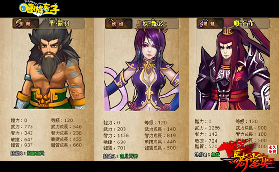 由於職業及屬性成長的差異,使得每個名將的定位也不相同。例如:聖·關羽就可作為坦克並且輔助輸出,魔·呂布就可作為強力輸出點,妖·甄宓既是輸出、也可當奶媽。總之,各大威望名將平分秋色,各自特色彰顯自然。