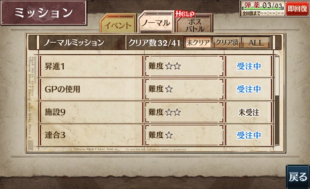 遊戲初期有許多具導引功能的「任務(ミッション)」,能指引玩家方向,任務獎勵能幫助遊戲順利進行,任務類型分別有軍營建設、卡片使、道具使用、戰鬥目標、軍階晉升及軍團交流。
