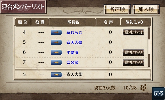 在遊戲中玩家可以選擇自創連合或加入別人的連合。玩家也可在「管理」介面裡,點擊下方的「召募ON/OFF」,開啟或關閉召募功能。最後,想加入其他連合的玩家也可在遊戲中寄出申請書等待核准即可。