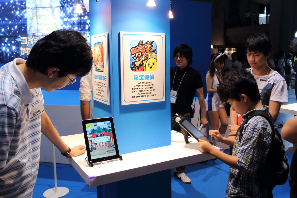 包含了 SEGA、CAPCOM、SQUARE ENIX、NAMCO BANDAI Games 和 LEVEL-5 等各家知名廠商,每家都至少展出了 6~ 15 款手機遊戲,逛了 2012 年的東京電玩展一圈,可以一窺智慧型手機不僅成功的打入了日本一向和世界相比「獨立」的市場,在手機遊戲的需求上也漸漸打破以往的鎖國政策,在 iOS / Android 平台上前仆後繼的推出知名作品的手機遊戲。