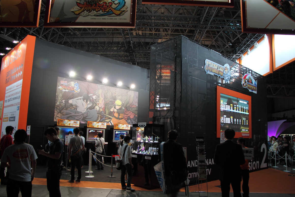 旗下擁有眾多知名人氣系列強作及動漫改編遊戲作品的 NAMCO BANDAI Games 的展出陣容,並沒有讓來場玩家感到失望,擺出的陣仗十分的均衡體面。在正對 TGS 會場主入口處設置了寬闊的主舞台區,攤位周圍也設置了三座巨大的螢幕,由巨大螢幕和大音響播映出遊戲畫面。