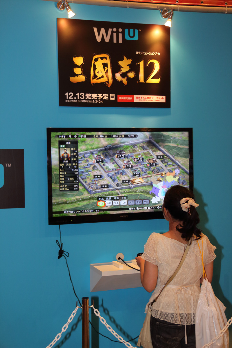 三國志 12 》,也在攤位的一角提供玩家試玩,也是少數有機會把完到 Wii U 的機台。整體而言,雖然 TECMO KOEI Games 的攤位只能說是中型的攤位,不過展出內容十分的豐富充實。