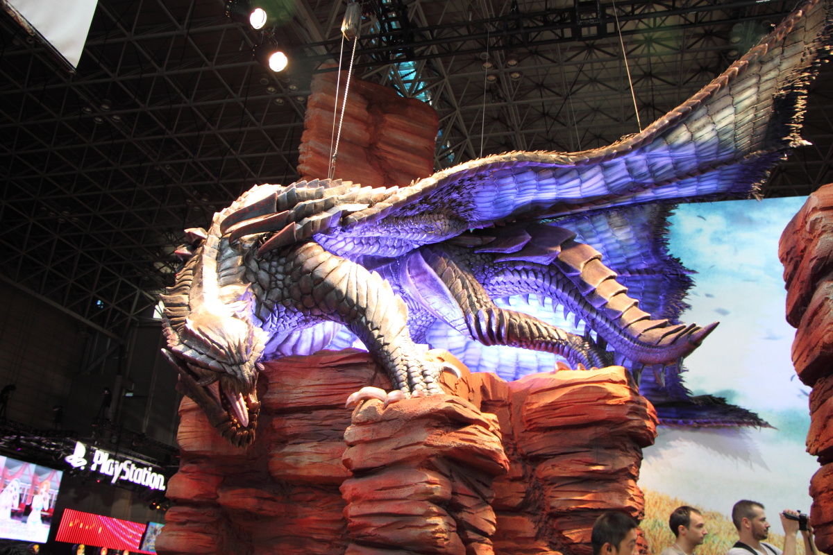 魔物獵人 4 》。在現場大規模以 4 代遊戲內容為靈感設置了造景主題區,儼然有如一個小型的《