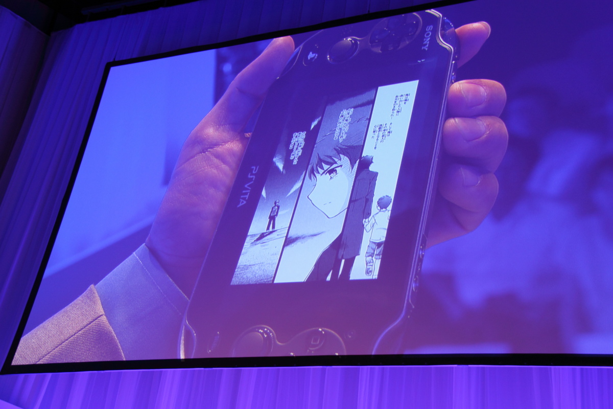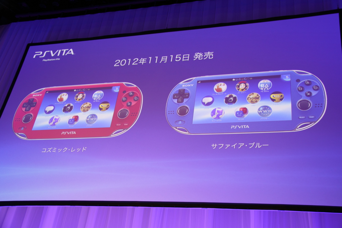現場除了 PS3 跟 PSP 之外,PS Vita 也發表了將會推出新色「絕色紅」與「寶石藍」,並且在功能方面加入閱讀漫畫的新功能。