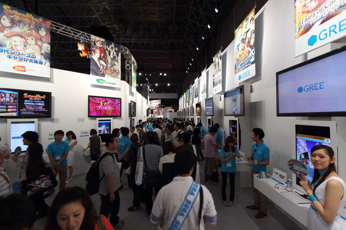 最明顯的例子可以說是近年崛起的日本手機平台大廠「GREE」,近兩年來 GREE 在 TGS 中的展示攤位擺設陣仗皆十分盛大,攤位所佔的大小和規模,儼然有超越傳統家機遊戲廠商,已經和 SCE 的 PlayStation 主機攤位陣仗相當,可以說是在震災後的日本遊戲業界戰國時代中,新崛起的戰國大名。