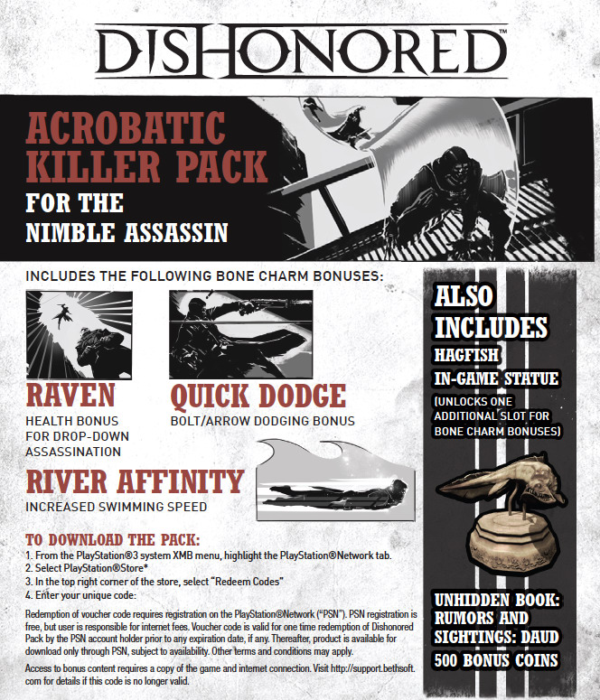 冤罪殺機》(Dishonored), 今日公開首批特典資訊,玩家將從四種不同的 DLC 套件隨機獲得一種。透過這些套件,你將擁有各種不同的技能。