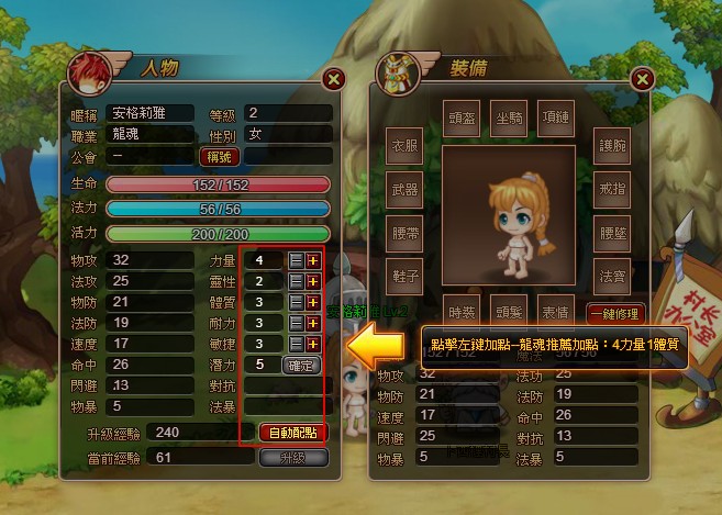 當經驗值達到了可以升級的條件時,玩家可以點擊右下角的人物圖示進行手動升級。