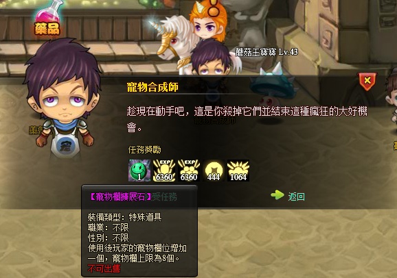 寵物精靈的獲得稍微比較困難,首要條件是必須人物等級先達到 40 級,才能參與精靈樂園的活動。
