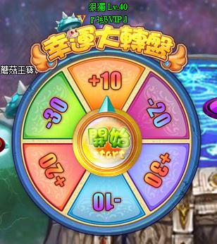 走到了兩把劍圖案的格子時,代表進入戰鬥,將遇到 Boss 怪物。如果走到黃色的格子,將會看到下圖的轉盤,轉重轉盤可獲得積分或扣分。