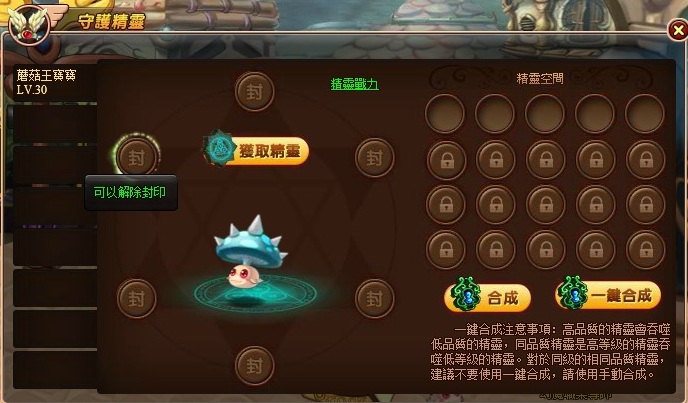 記得要解開寵物封印喔,這樣才能裝備精靈