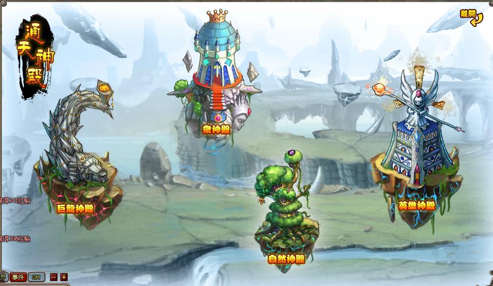 在此也簡單說明一下通天神殿, 通天神殿一共分為 4 個層級,分別為:自然神殿,巨龍神殿,英雄神殿,眾神殿難度由低到高。每一個勇闖神殿的強者,都能獲得寵物資質丹與魔法礦石作為獎勵,根據闖關難度的高低及闖關層數的不同,獎品的數量與品質各有不同。