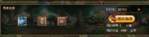 把跑商的物品雙擊放進去馬車倉庫後,系統會顯示跑商需要的時間跟可獲得的金幣有多少。