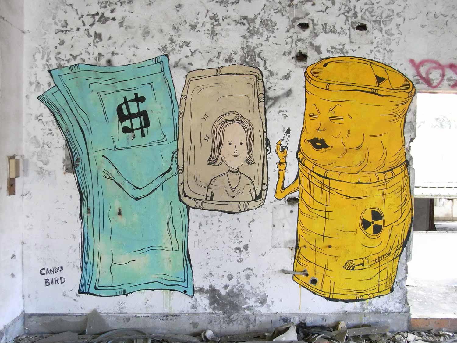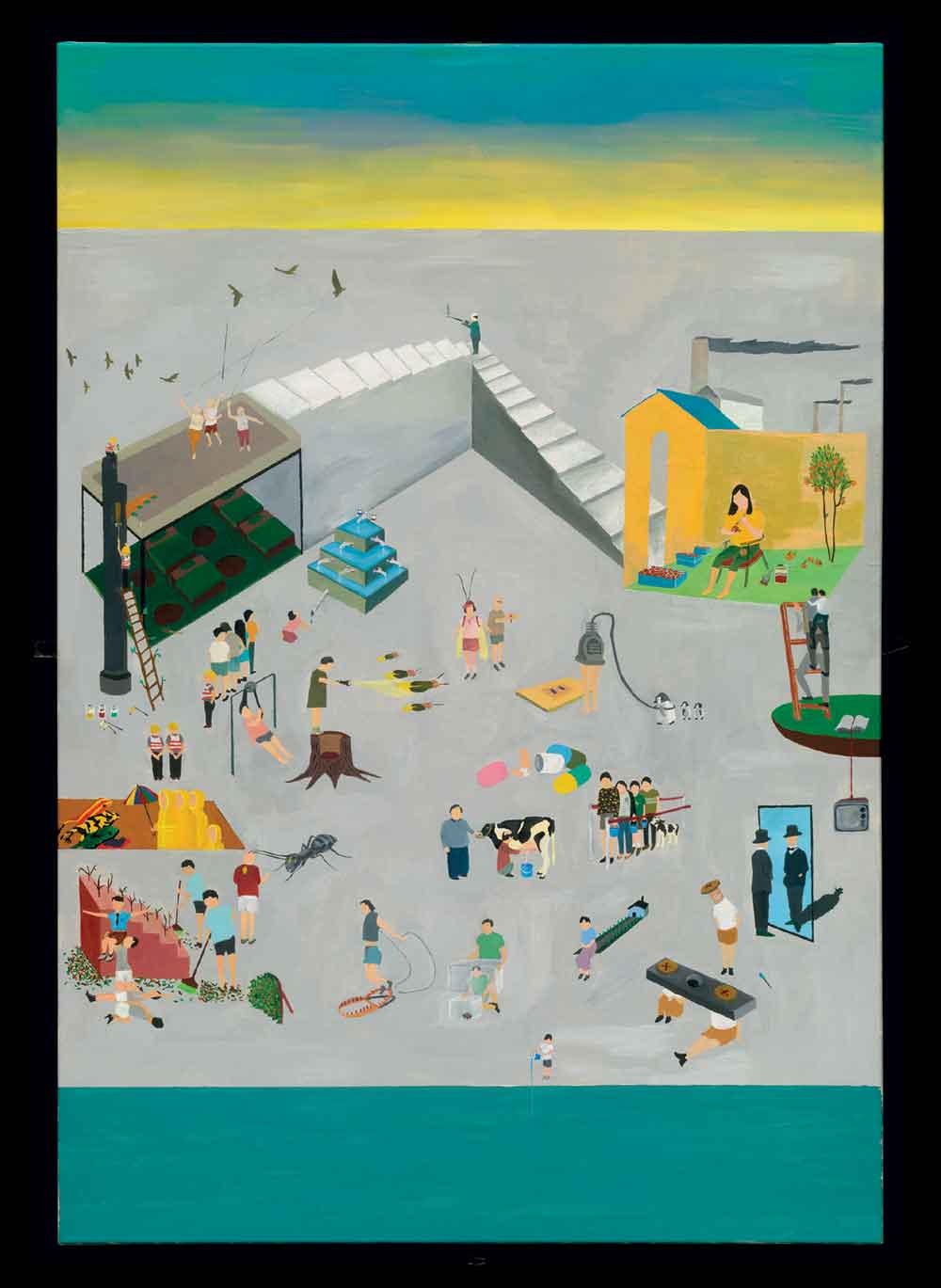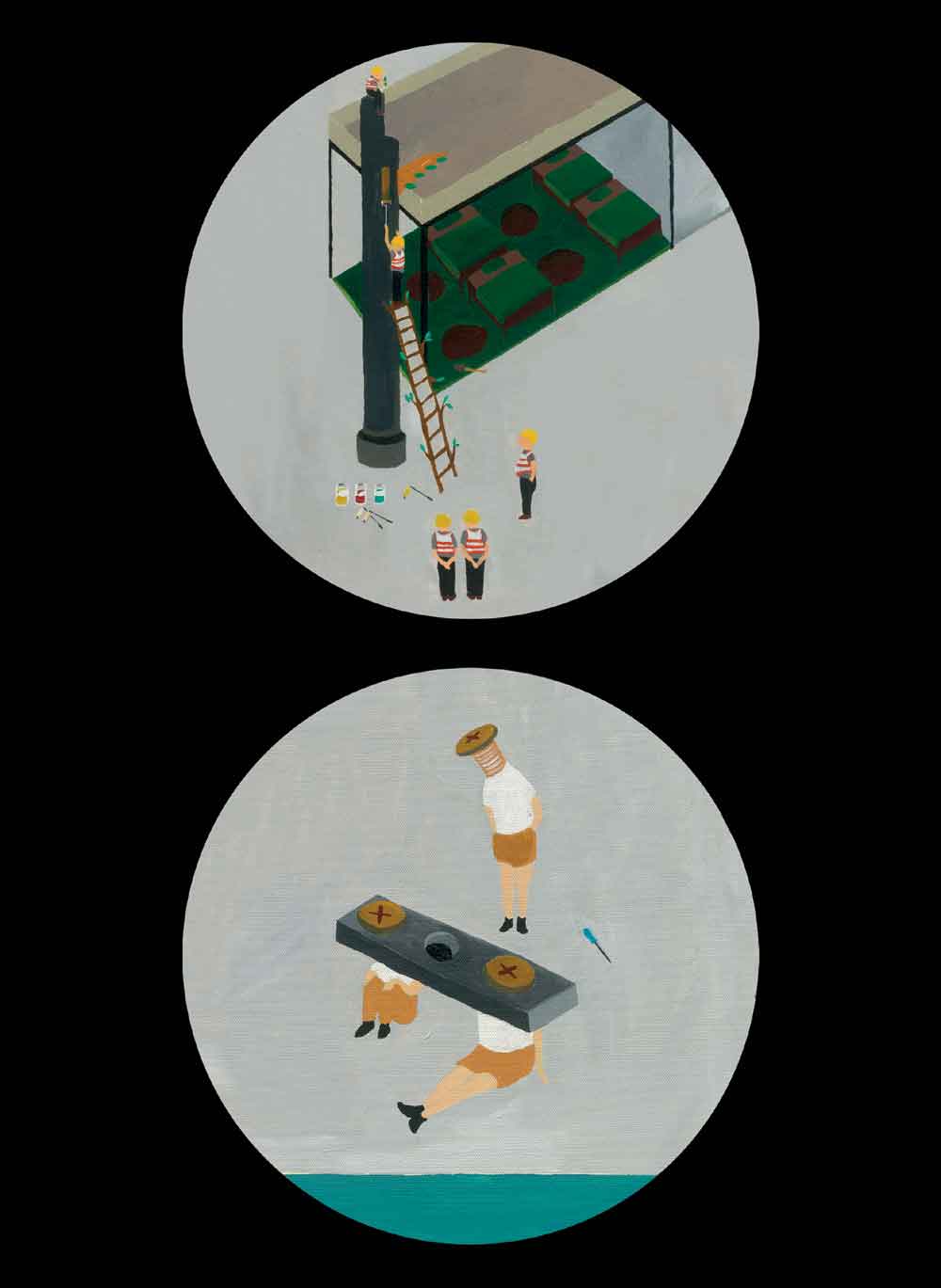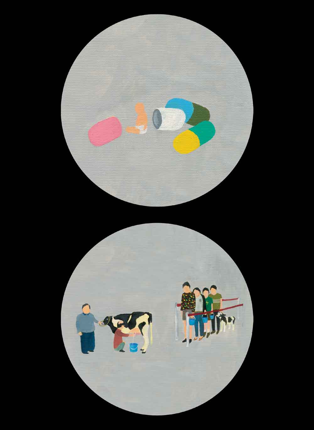 而以該書為中心,目前也正在好丘(信義公民會館)進行原畫展,希望除了書以外也可以用這樣的形式和一般公民對話,創作者所使用的媒材及形式非常多元,有大型壓克力畫、塗鴉、木板、絹印,其中的一件作品是需使用有色眼鏡才能觀賞的雙重漫畫。