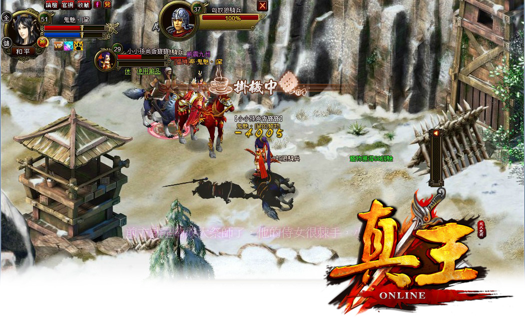 根據探子回報,塞外附近發現匈奴單于弟弟左賢王,帶領一小隊匈奴騎兵,對我國邊關的一些小村莊進行掠奪,在搶奪走一些壯丁跟寶藏之後,在雪山腳下附近紮營休息,請各位王者們速速前往剿滅…。