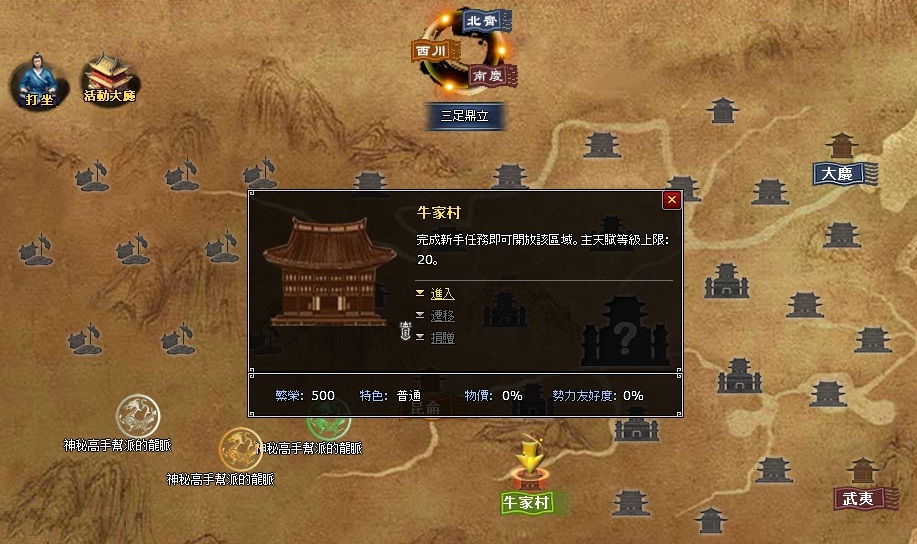 主天賦達至上限 20,必須將城鎮從「牛家村」遷移至三大勢力之一