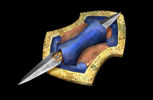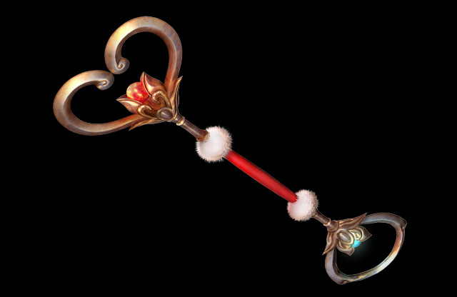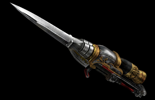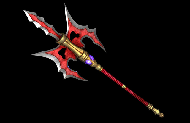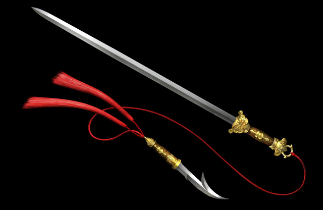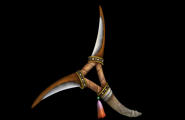 擊劍:劍柄下連接著細長繩子的直劍,繩子前端接著弧型短刀。一般攻擊會進行像是中國劍演舞般的連續攻擊。集氣攻擊的話,連接著細繩的短刀就會像是繩鏢一樣的方式進行攻擊,當短刀打到對方時,就好像是勾住對方一樣可移動過去