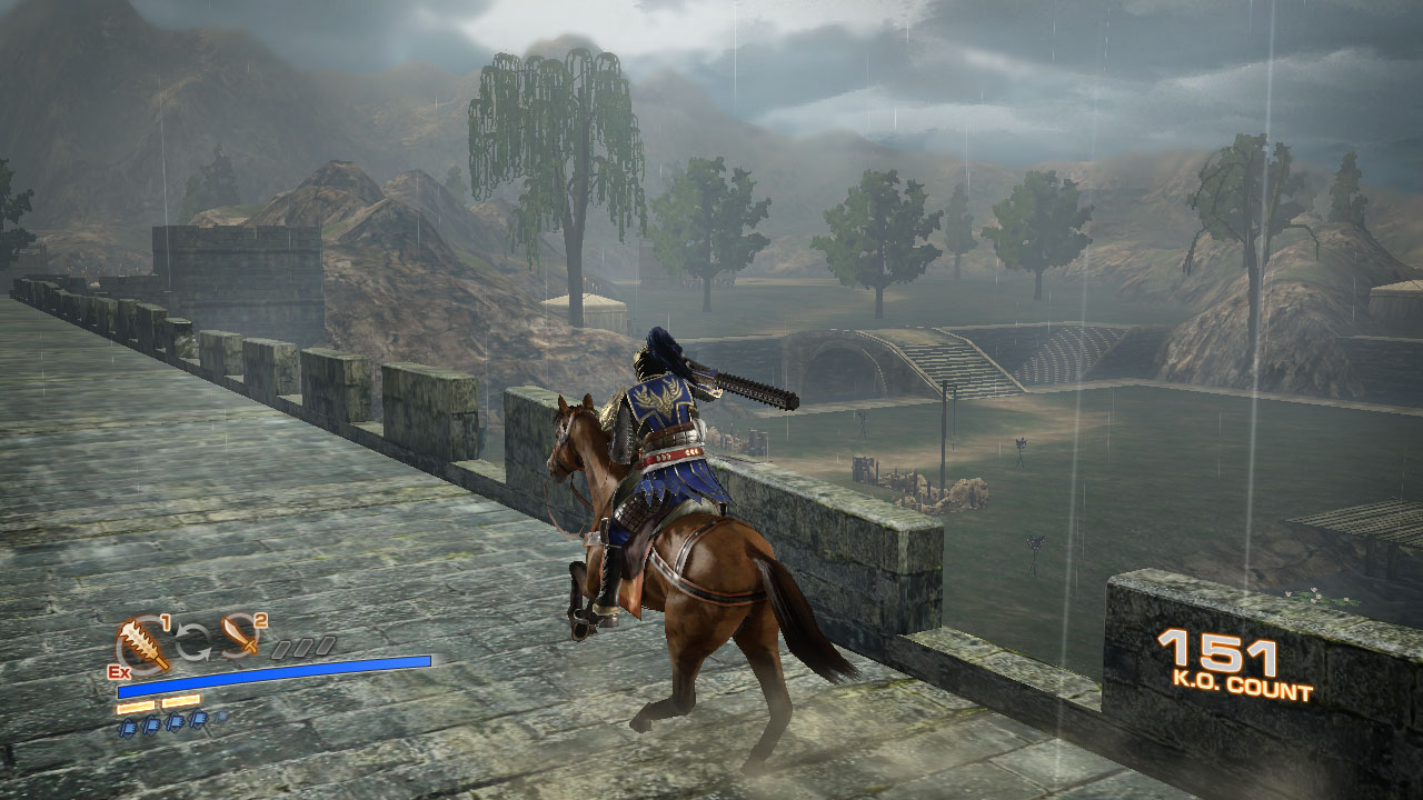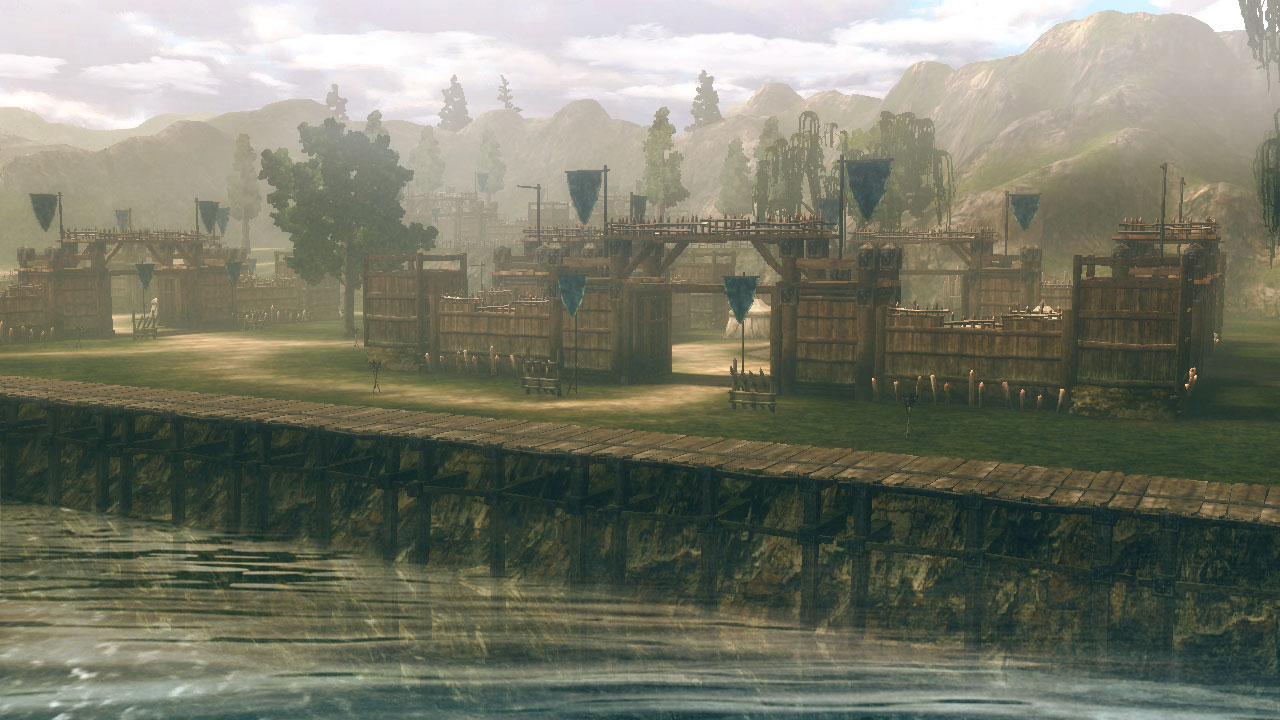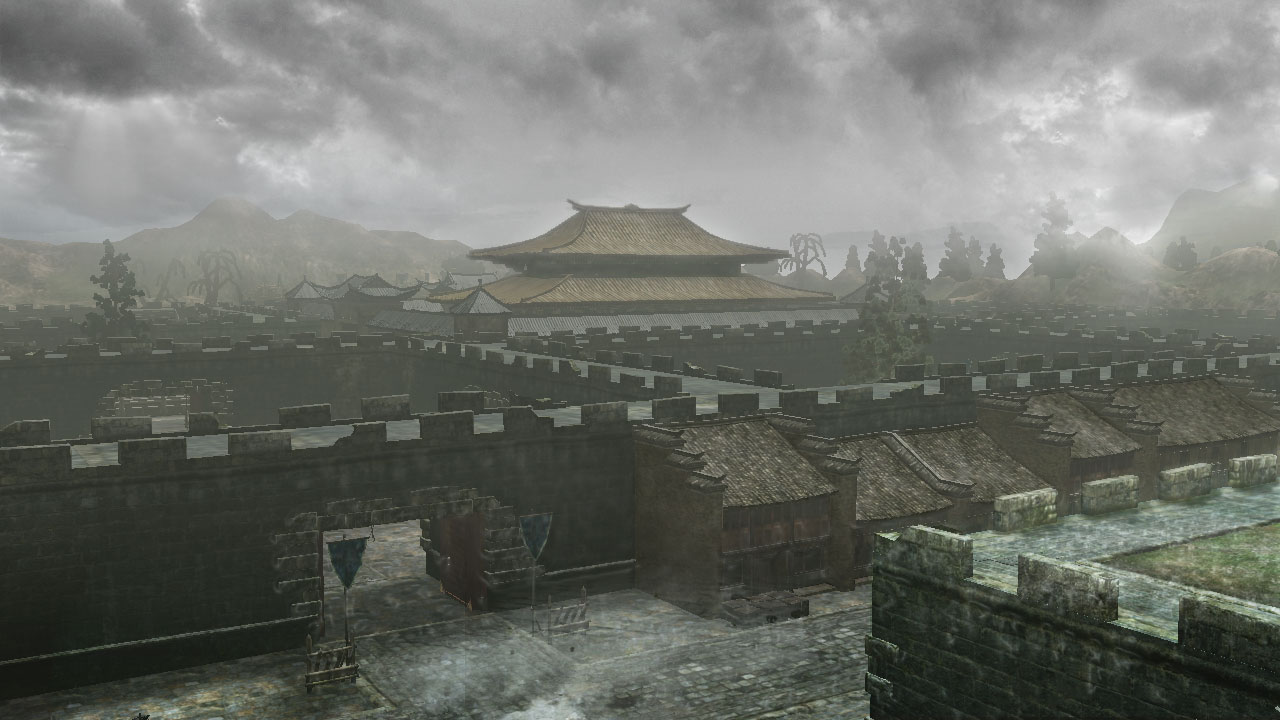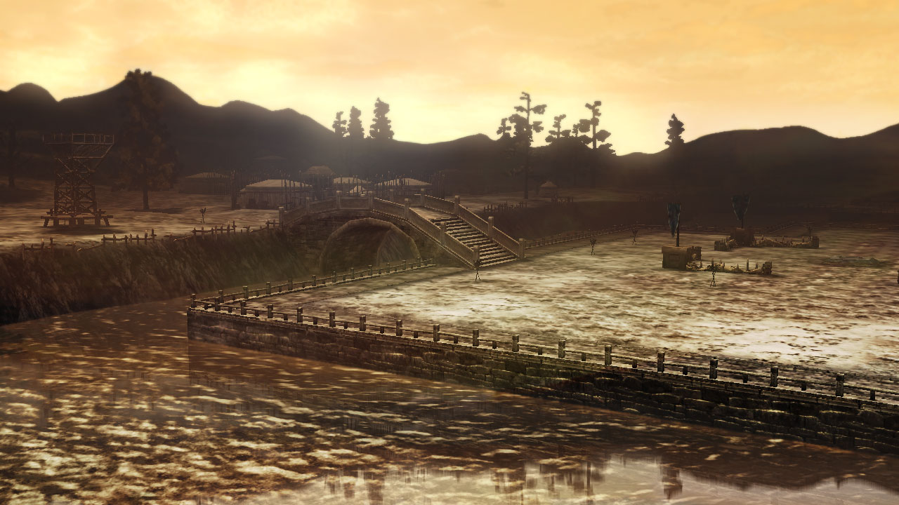 新場地「襄陽」:場地中央有城塞聳立著,而據點就像是要包圍住一樣四處都有。因為可在城牆上移動,從南邊高台往下看的話可以看到接著雨的池子。看來這是一個非常適合水計的場地水計