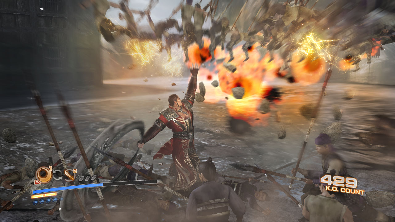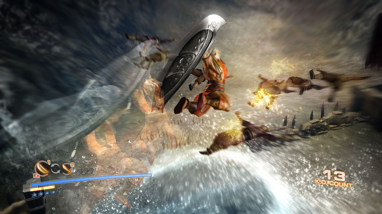 破城槍:巨大機械式的長槍。武器後部跟武器中央開關部內有內建推進器。只要拉一下武器中央部的桿子,吸氣口就會打開吸引空氣。吸入的空氣在經過壓縮之後,再從推進器放出來就可進行爆發性的加速移動。一般攻擊就像是長槍般的突刺或橫向攻擊。集氣攻擊則是隨著推進器釋出的空氣來進行加速攻擊,以及整個人就好像是飛彈一樣飛天的滯空攻擊