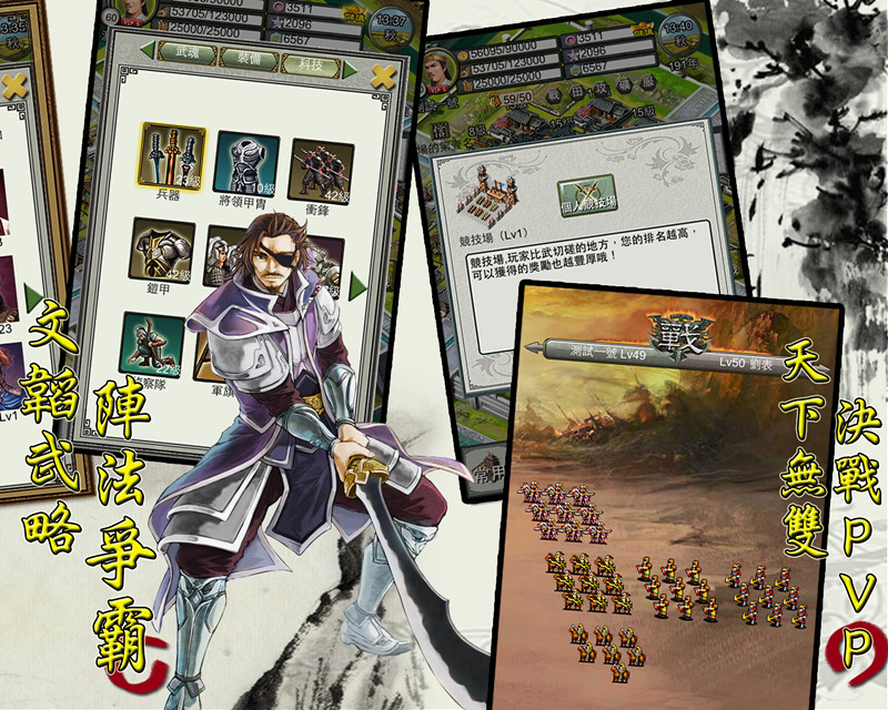 軍臨城下:三國志》融合三國著名的戰役,結集各戰略遊戲的精髓及龐大的副本系統,另外更加入競技場提供給喜愛 PVP 的玩家可以互相切磋比武、一戰高下!超越所有過去同類遊戲的枯燥呆版,彈指之間喚起心中沉睡已久的志氣與野望。