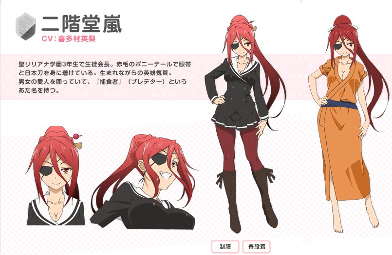 二階堂嵐(CV:喜多村英梨) 學生會長,在學校時展現非常豪爽的一面,觀念開放,在第一話後半就開始誘惑初識的秋人。不過在自己家中時似乎有著意外的一面…?