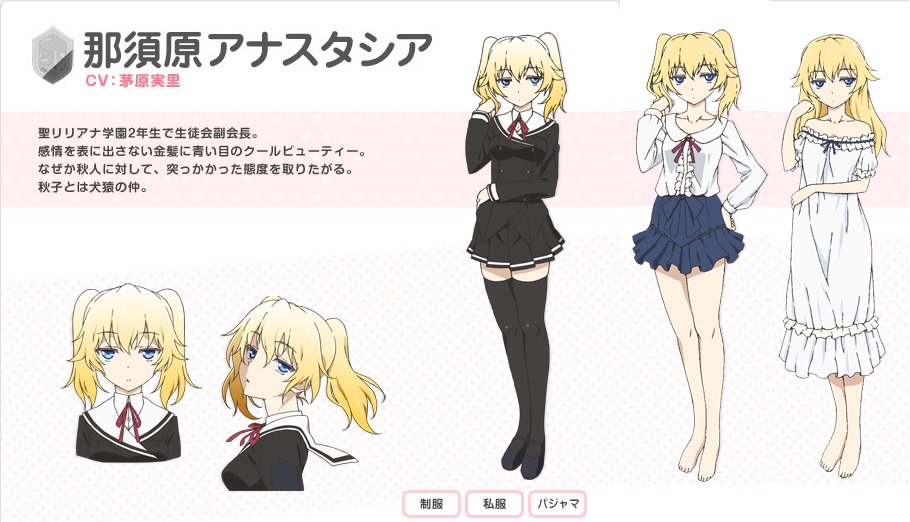 安娜史塔希亞・美沙希(CV:茅原實里) 學生會副會長,金髮雙馬尾的大小姐,不會在表情與口氣上展現感情。