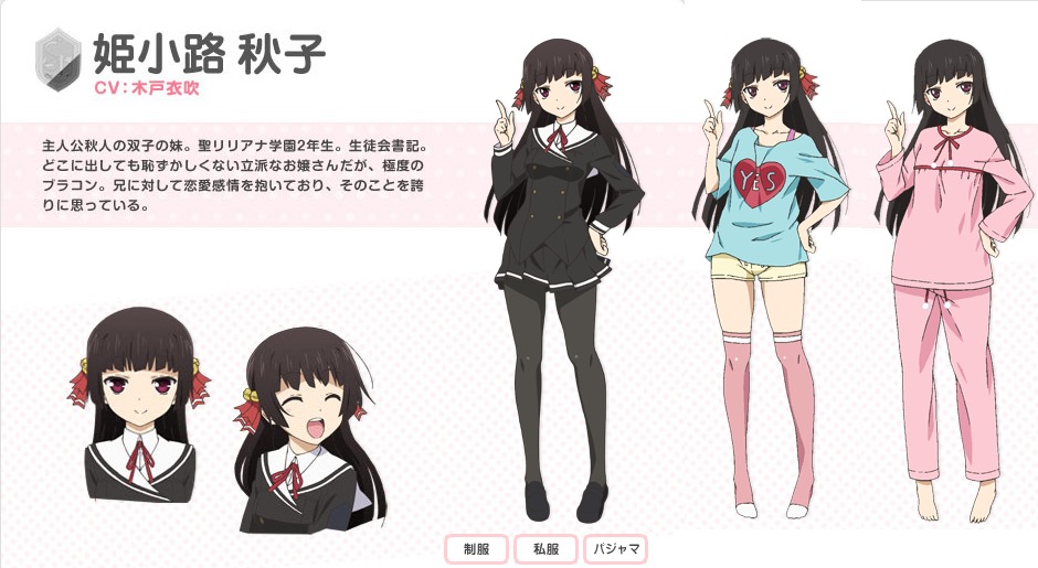 姫小路秋子(CV:木戶衣吹) 目前擔任學生會書記。在第一話中,秋子的表情非常的豐富可愛,由年僅14歲,就讀國中三年級的聲優木戸衣吹配音。