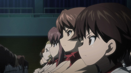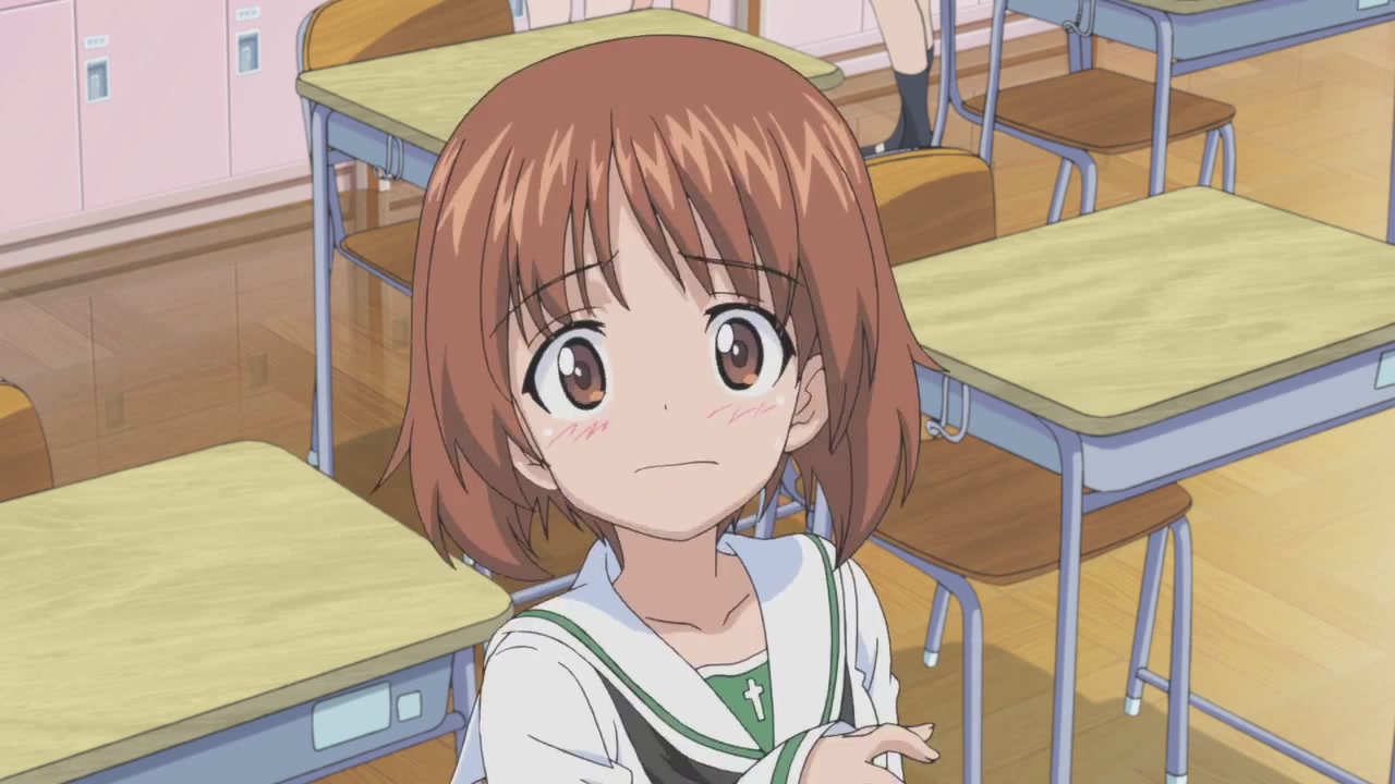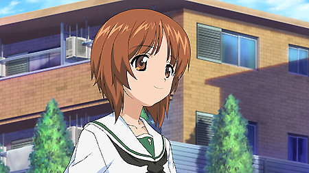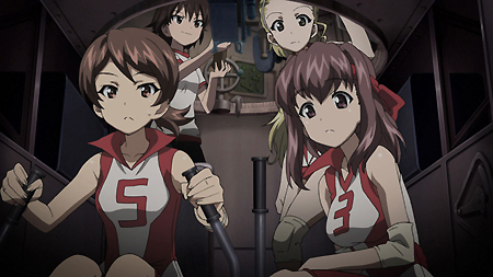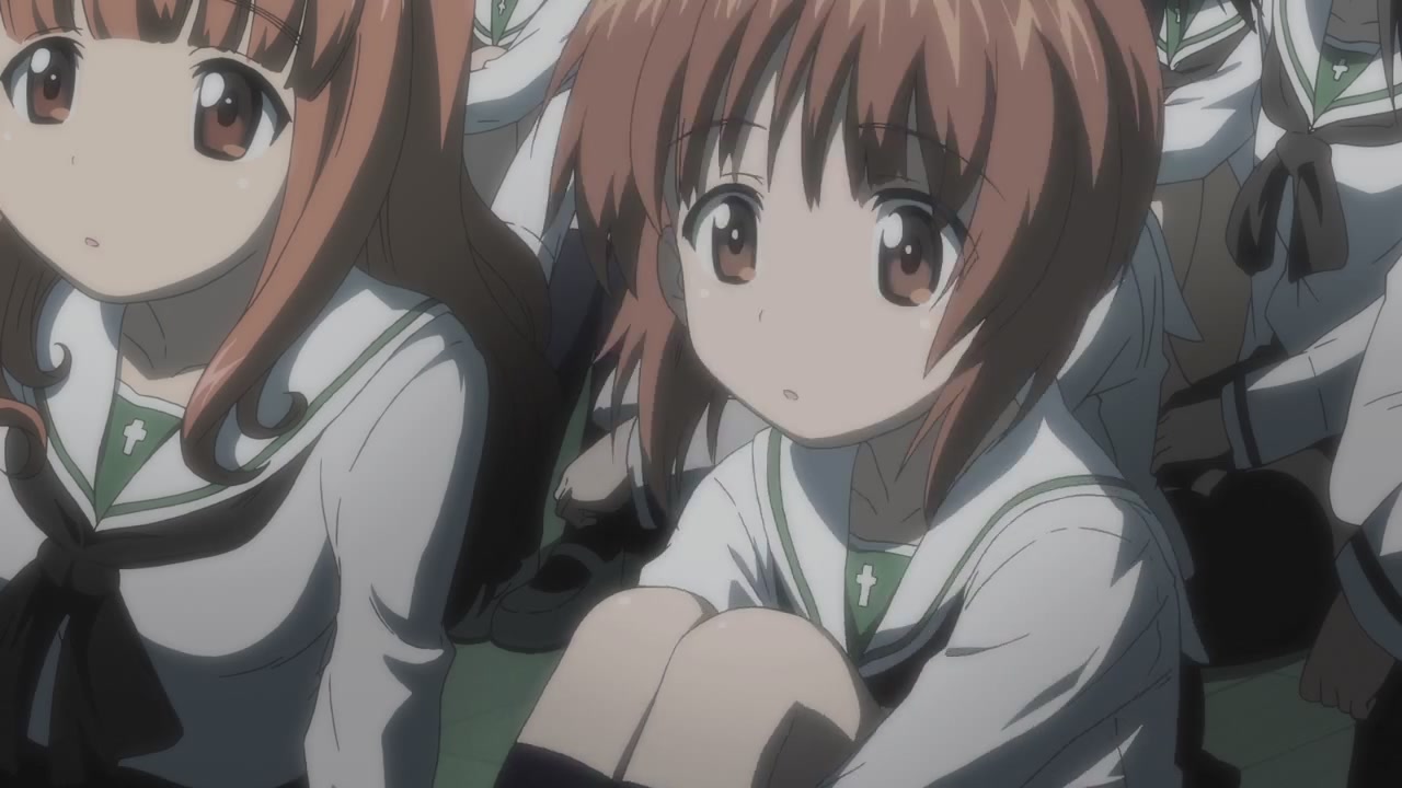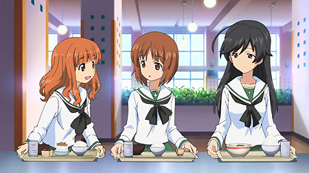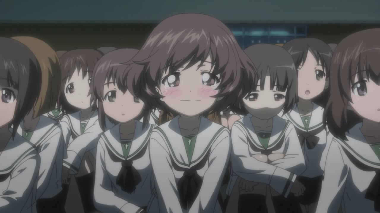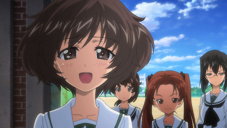 第一話一開始,就是西住美穗所在的戰車隊伍第一次的比賽。背景、戰車皆以 3D 的方式表現,因此畫面在運鏡上非常的自由,而且戰車的行進中的搖晃、配合引擎與履帶、還有炮台轉動的聲音,可說是臨場感十足。不過就像在先行上映活動中,中上育實與茅野愛衣兩位聲優所說,那個畫面真的會讓人有頭暈的感覺。從對戰中炮彈爆炸的情況來看,戰鬥使用的應該是實彈,可是參賽的成員卻連鋼盔都沒戴…這一點相當讓人疑惑,雖然照官方的介紹來看不太可能,但從畫面演出上看起來,這比賽如果被打中,很像真的會死人的樣子阿!