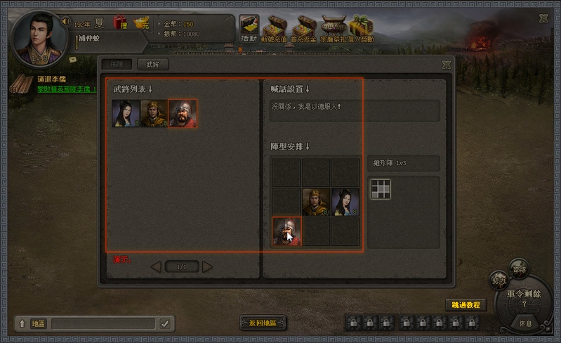 收了華雄之後,系統就出現陣型的變化,告訴我們可以準備使用這名武將了,目前看到的是「LV.3 錐形陣」,這款遊戲主打是一款深具策略性的三國網頁遊戲,又強調玩家需自行思考調兵、佈陣,接下來應該會出現更多陣型。